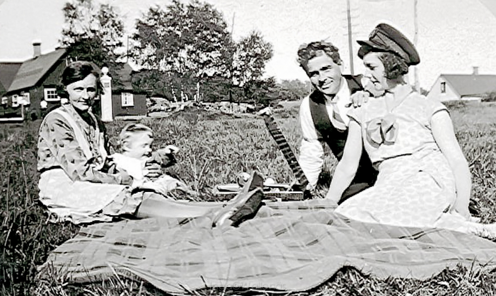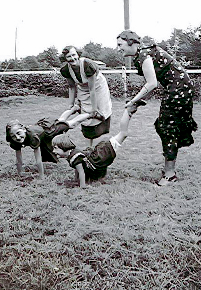 Med söndagsklänningarna på i gröngräset. Till min förvåning sa man om mig i min ungdom att jag var stel. Kanske låg det något i det.