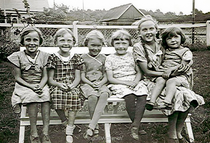 Astrid, jag, Inga, Inga-Britt, Lena och Vera. Min 7-årsdag.
