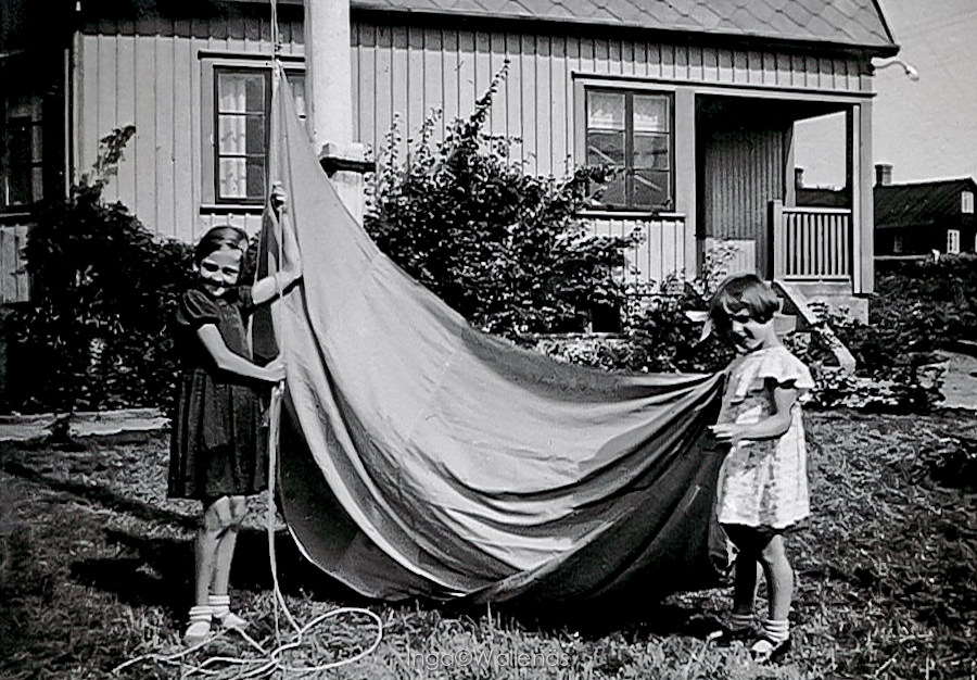 Examensklänningen var något mycket viktigt. Om lillasyster fick en ny klänning samtidigt kallades den också examensklänningen. Jag minns alla mina från första till sjätte klass. På sommaren efter skolavslutningen kallades den söndagsklänningen. Vi fick nämligen för det mesta ha den på söndagarna, liksom de nya skorna. Vera och jag hade alltid söta klänningar, mamma var duktig att sy, om hon nu bara hann, annars sydde faster Ella eller tant Anna till oss.