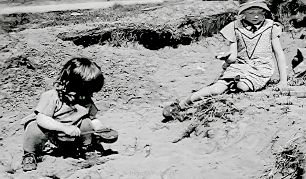 Tänk så stygg jag kunde vara mot min lillasyster! En gång skulle vi åka till Halmstad med tåget, och hon ville vara riktigt fin, så hon tog en av mammas papiljotter och rullade upp på sidan, där benan var. När hon tog bort papiljotten hade den gjort sin verkan och håret var lockigt endast där den suttit, dessutom med halva den övriga hårlängden, för övrigt var håret rakt. Hon tyckte att hon var fin, men jag tyckte att hon inte såg riktigt klok ut. Så jag blötte en kam och lyckades dra den genom lockarna, innan hon hann hejda mig. Stackars Vera! Hade jag bara varit lite äldre, hade jag väl kunnat ha överseende och skrattat åt det hela.