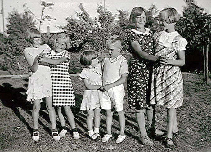 Vi åkte tåg till centralstationen i Köpenhamn, där vi bytte tåg till Valby. Det var mycket folk som gick av tåget där, vi gick uppför en trappa, och farbror Bror sa, att jag skulle gå bakom honom, så att jag inte syntes för dom som stod uppe och mötte, nämligen Henny, fastrarna Klara och Ella. Dom visste inte att jag skulle komma, så det blev en överraskning, när jag hoppade fram! En glad överraskning, som jag minns det.